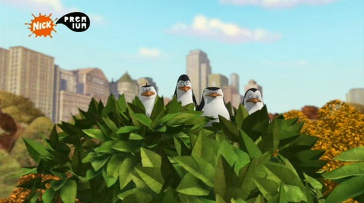 Hier stehen die Pinguine vor der Tafel mit der Karte im Park: