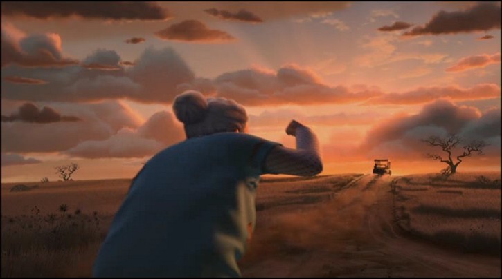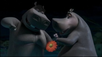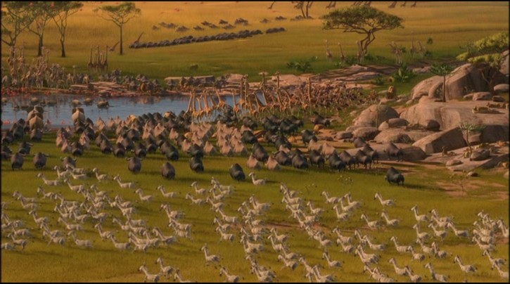 Alles wendet sich zum guten: Das Wasser ist wieder da, Alex wird wieder in's Rudel aufgenommen, Melman stellt fest, daß er nicht sterben muß und kommt mit Gloria zusammen, und Marty ist so einzigartig, daß Alex ihn in einer Horde Zebras erkennt. Und während sich die Pinguine mit dem Flugzeug auf die Heimreise machen, bleiben Alex, Marty, Gloria und Melman, und auch Julien und Maurice in Afrika.