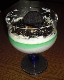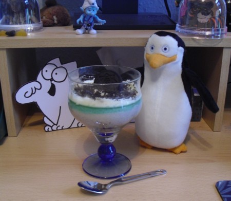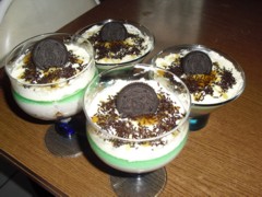 Kurz vor dem Anrichten mit Schokostreuseln und je einem Oreo-Keks garnieren. Dies wirklich erst kurz vor dem Servieren tun, da der Keks sonst matschig wird. |