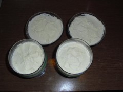 Die Philadelphia-Masse auf die vier Gläser verteilen. |