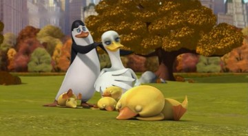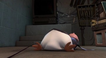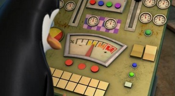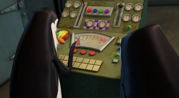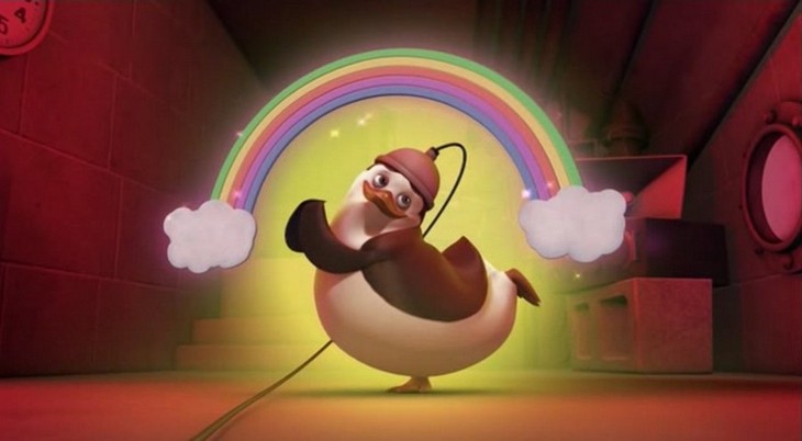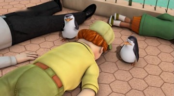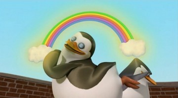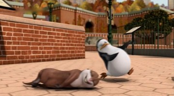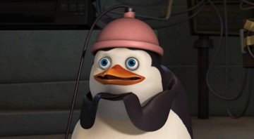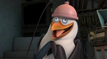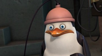 Kowalski möchte die Knuddligkeit der Pinguine mit seinem Aufknuddler erhöhen: