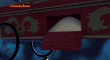 Aus der Not wird eine Tugend, denn während sich die Pinguine gegen X wehren, öffnen sie unvermittelt die Seitenklappe des Wagens, aus der das Salz in die Regenwolken strömt und lösen so den lang ersehnten Regen aus: