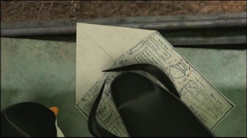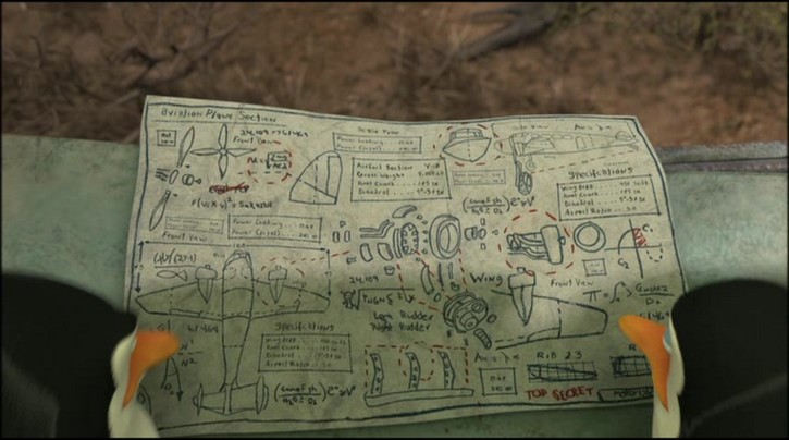 Das Flugzeug muß repariert werden. Kowalski macht sich Notizen:
