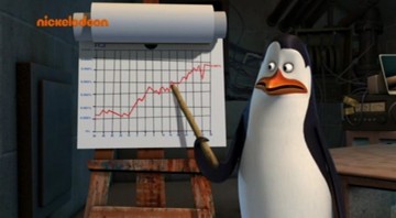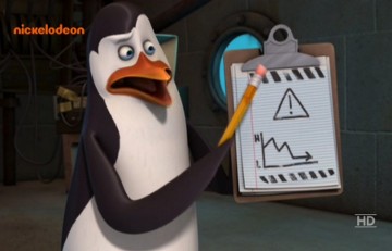 Kowalski: „Und doch ergibt es irgendwie Sinn! Also, Maurice ist für ein Säugetier außerordentlich intelligent! Und Julien indes ist außerordentlich naiv! Die rote Linie zeigt das Frustrationslevel, einer wirklich klugen Person, die sich von einer minderbemittelten Person Befehle geben lassen muß! Wie ihr seht, steigt das Frustrationslevel immer höher, und höher, und höher! Ich meine, wieso übertraägt man nicht dem klugen Kerl die Leitung, hä? Das ergibt doch keinerlei Sinn! Da muß was passieren, Leute, es muß sich zwingend was ändern! Bin ich denn ein Blinder, der von Farbe redet?”
