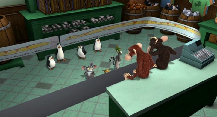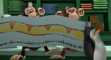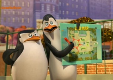 Kowalski: „Wir durchforsten den Zoo in konzentrischen Kreisen gegen den Uhrzeigersinn! Der Vorteil dieser speziellen Suchmethode…” (Weiter kommt er leider nicht, da Skipper das ganze nur für sinnloses Geschwätz hält.)