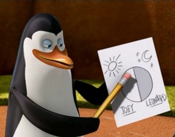 Kowalski schildert, wie gut die Gehege-WG aufgrund der verschiedenen Wachphasen von Joey und Leonard funktionieren müßte. |