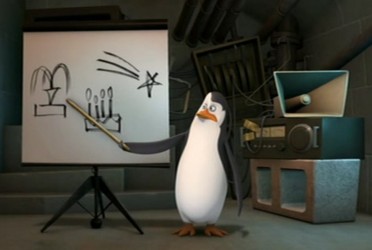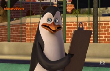 Skipper: „Ich meinte, das ist ein sehr gefährlicher Job für Pinguine! Und du bist weit davon entfernt, einer zu sein, und zwar ohne Wenn und Aber; dickes Ausrufezeichen! Kowalski, erklär' ihm dieses Satzzeichen!”