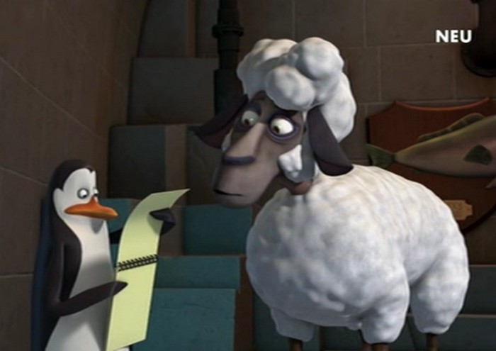 Hier erklärt Kowalski Randy, daß der natürliche Lebensraum von Schafen gar nicht der Streichelzoo ist: