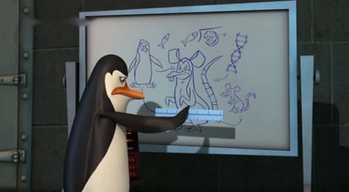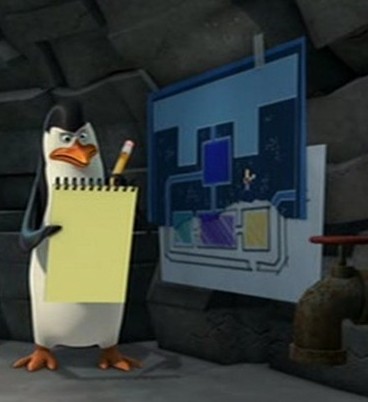 Wenn man genau hinsieht, hat diese Notiz (Kowalskis rechter Flügel) eine ungeheure Ähnlichkeit mit seiner Notiz über den Austausch von Zootieren in Robotertiere. Ob Kowalski Skipper nicht so ganz ernst nimmt…?