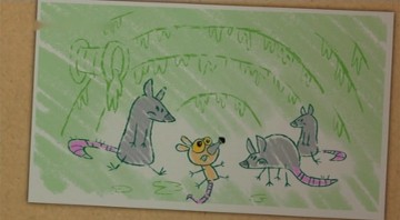 Kowalski: „Du bist jetzt Karl Lochkäsebohrer, geboren in der Kanalisation. Allerdings wurdest du von einigen vertriebenen Waldratten aufgezogen, und das karge Leben in der Dunkelheit führte zu deinen großen Augen und dem bohrenden Verlangen danach, deine verschollenen Kanalrattenbrüder ausfindig zu machen. Noch irgend welche Fragen?”