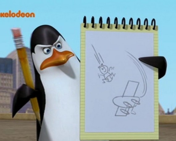 Hier erklärt Kowalski das Prinzip einer klassischen Cartoon-Verfolgungsjagd: