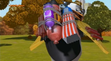 Versuch 2: Dieser Standard-Düsen-Rucksack wurde von Kowalski mit Waffen und zusätzlichen Turbodüsen ausgestattet!
