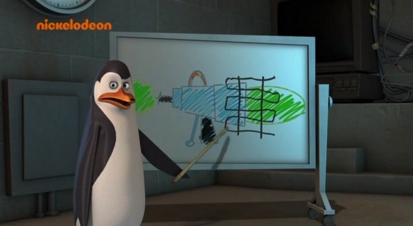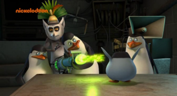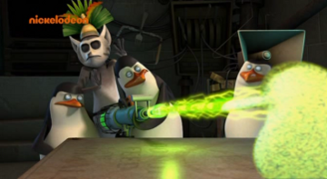 Kowalski erklärt das Prinzip: Die Strahlenkanone soll alte, verdorbene Ware in ihren jüngeren, frischeren Zustand zurückversetzen. Nun, das hat bei Skipper wunderbar geklappt!