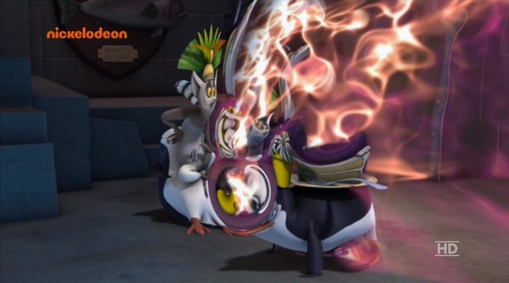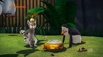 Während Julien sich anderweitig beschäftigt, bemüht sich Kowalski, die Stopuhr zu reparieren: