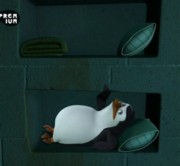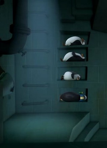 Später in der gleichen Nacht, nach dem ersten Einsatz in Marlenes Gehege, liegt Private ganz unten, und Skipper hat offensichtlich die Koje über ihm, denn diese ist leer, und als Private ihn anspricht, ist Skipper noch auf.