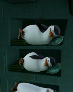Die Pinguine schlafen in Kojen übereinander. Anscheinend ändert sich die Schlafordnung aber hin und wieder. In der Weihnachtsgeschichte glauben die Pinguine, Private hätte sich hingelegt. Man könnte daraus schließen, daß Private ganz unten schläft – es könnte hier aber auch sein, daß er sich einfach eine freie Koje genommen hat (für seine Tarnung).