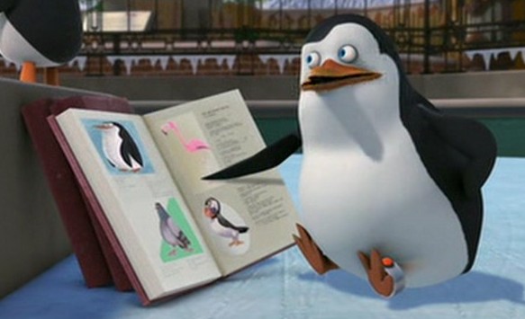 Verhalten sich unsere Pinguine wirklich wie Pinguine? In »Frost und Frust« braucht Skipper Instruktionen von Private darüber, wie sich Pinguine üblicherweise verhalten. Private selbst muß diese Informationen nachschlagen: