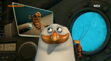 Die Schaben fallen bei den Pinguinen ein. Wie sich herausstellt, kennen sie Rico ganz gut und bitten die Pinguine um Hilfe, denn der Extermiantor ist ihnen auf den Fersen…