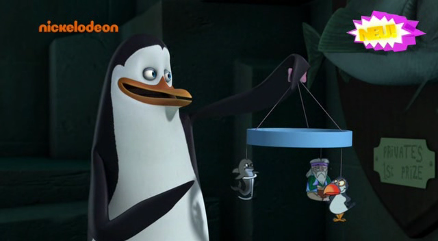 Hintergrund zur Storyline: Privates Schutzanzug aus seiner ersten Begegnung mit Barry kommt wieder zum Einsatz. Kowalski hat ein Mobile für Skipper mit seinen Erzfeinden.