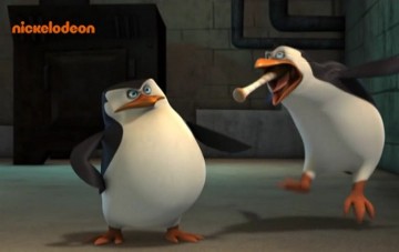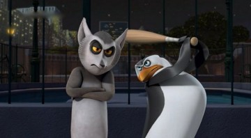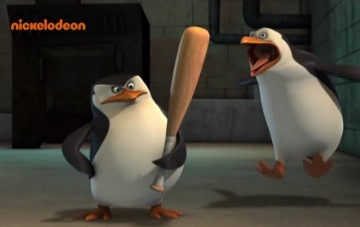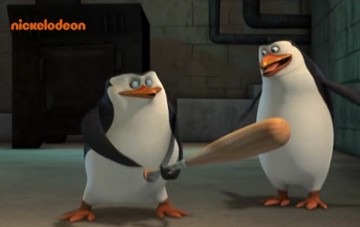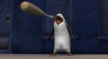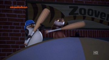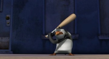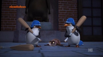 Skipper fordert Kampfausrüstung! Rico gibt Baseballschläger, und die passenden Helme dazu für sich, Skipper und Marlene aus: