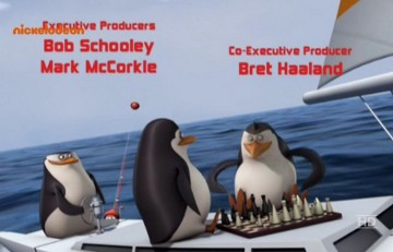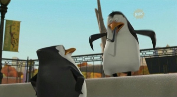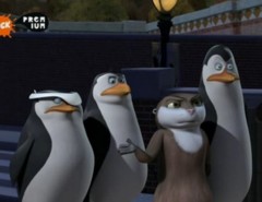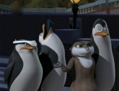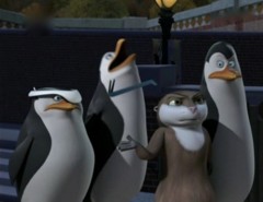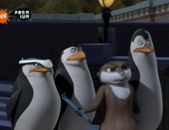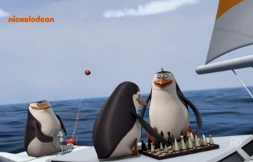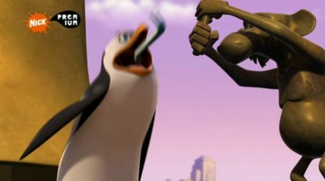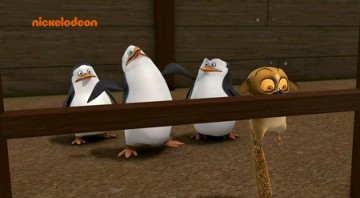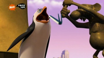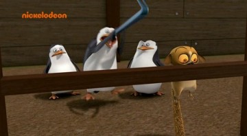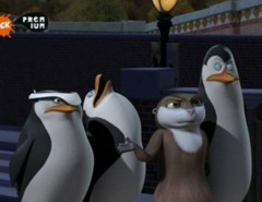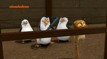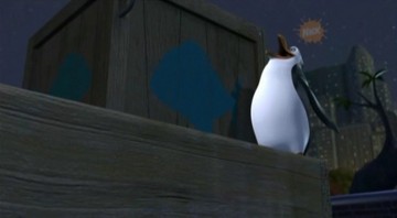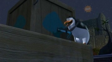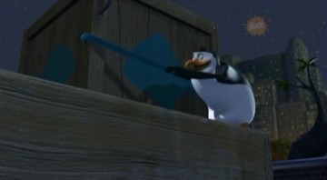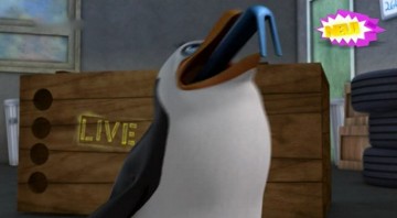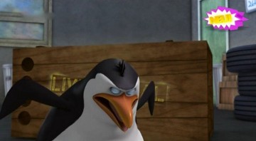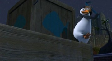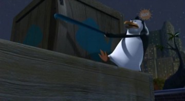 Die Pinguine wollen den Inhalt einer Kiste untersuchen: