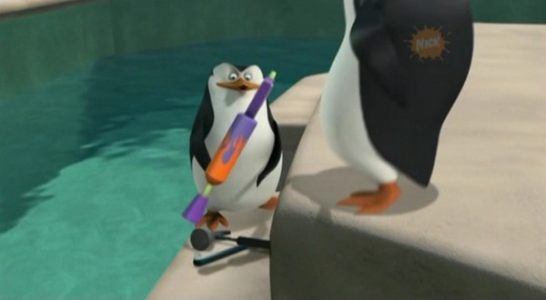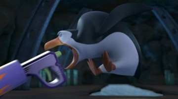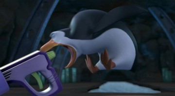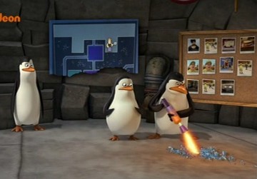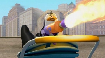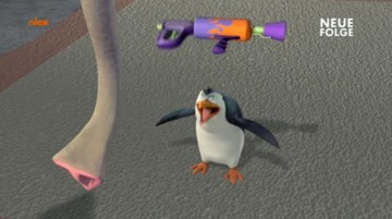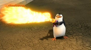 Mit dem Flammenwerfer verschaffens ich die Pinguine und die Lemuren Zutritt zu Professor Quimby!