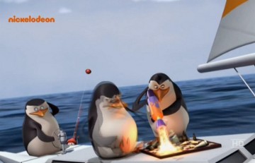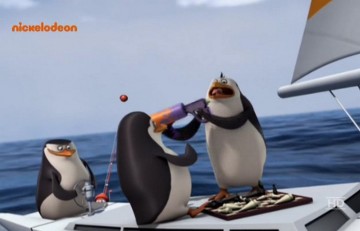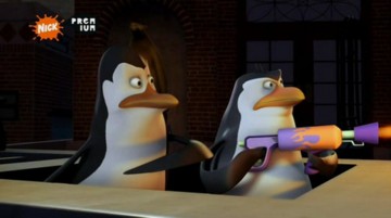 Die Pinguine überfallen einen Fischwagen: