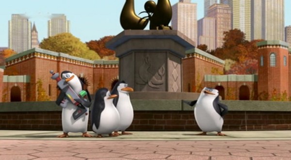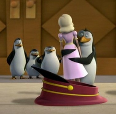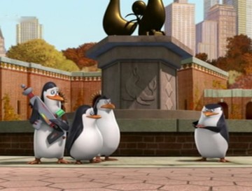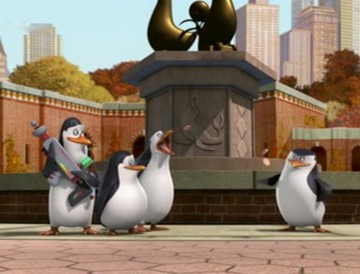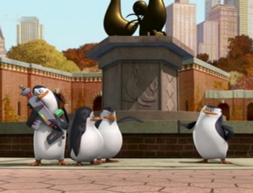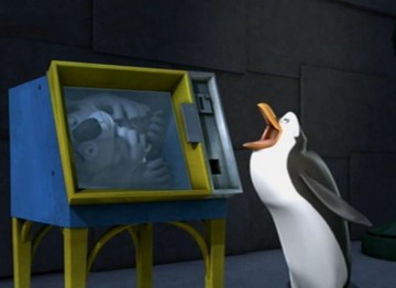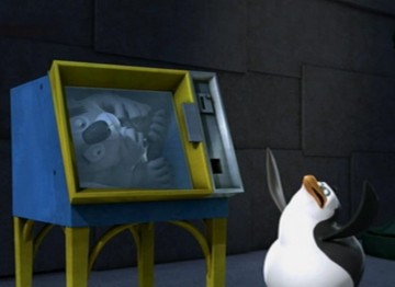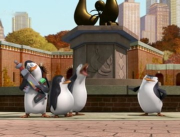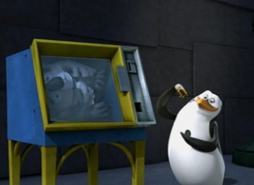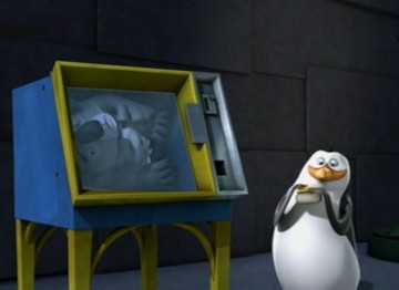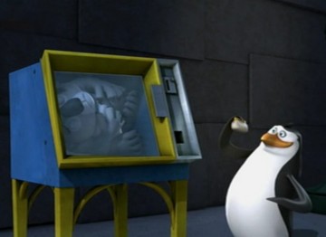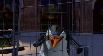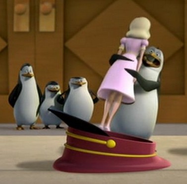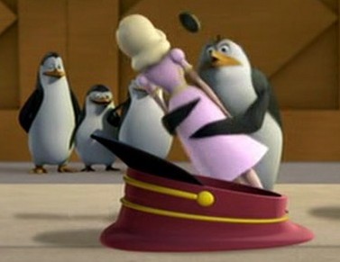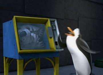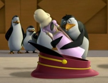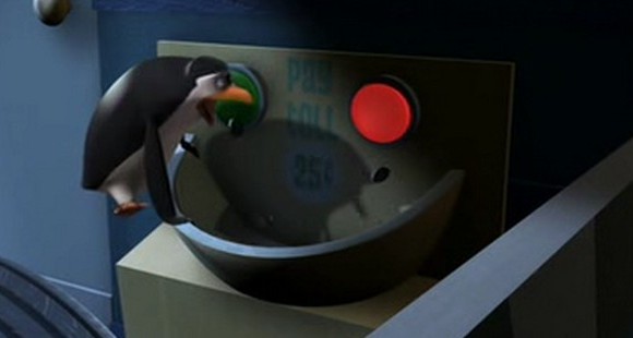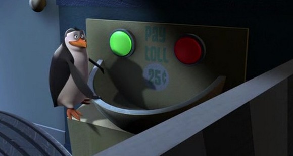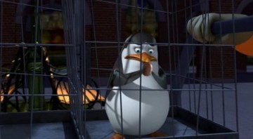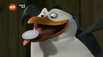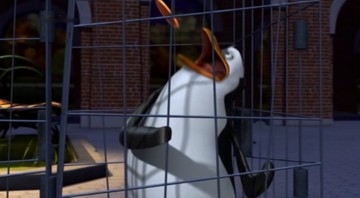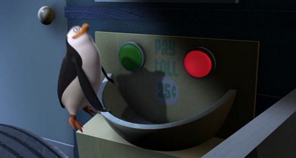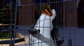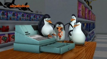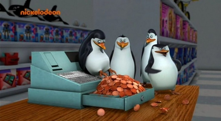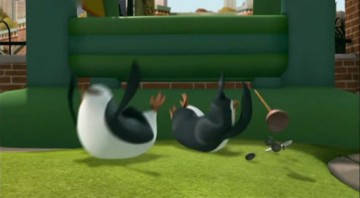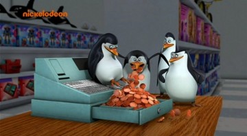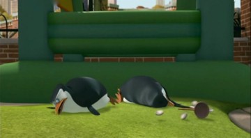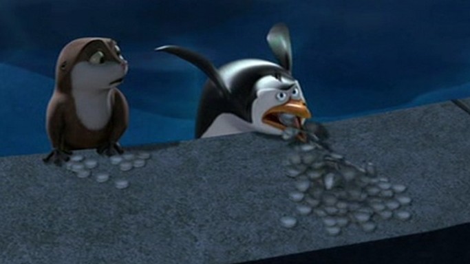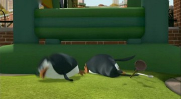 Als Mort die Pinguine gegen die Hüpfburg schleudert, spuckt Rico unter anderem ein wenig Kleingeld aus: