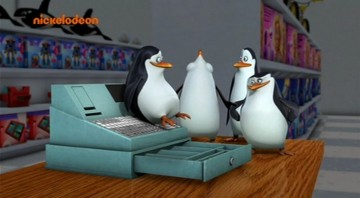 Die Pinguine bezahlen, wenn sie etwas einkaufen: