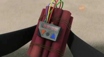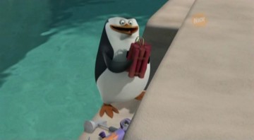 Skipper: „Dynamitastisch! Ein Klassischer Dynamitsprengsatz mit einem digitalen Zeitzünder! Maximale Sprengkraft, gepaart mit maximaler Fluchtmöglichkeit! Rico, du bist ein echt verrücktes Genie!”