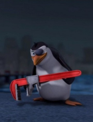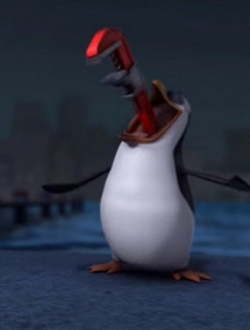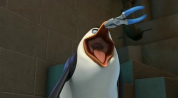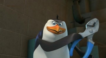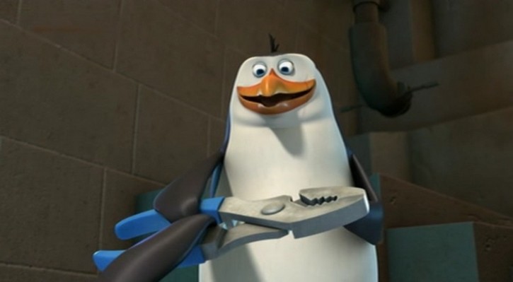 Hier mit einer Kombizange: Rico geht Kowalski bei seiner Arbeit am Chronotron zur Flosse: