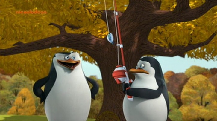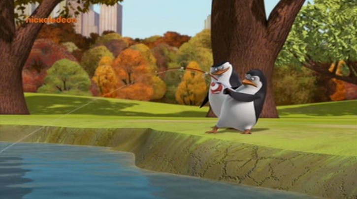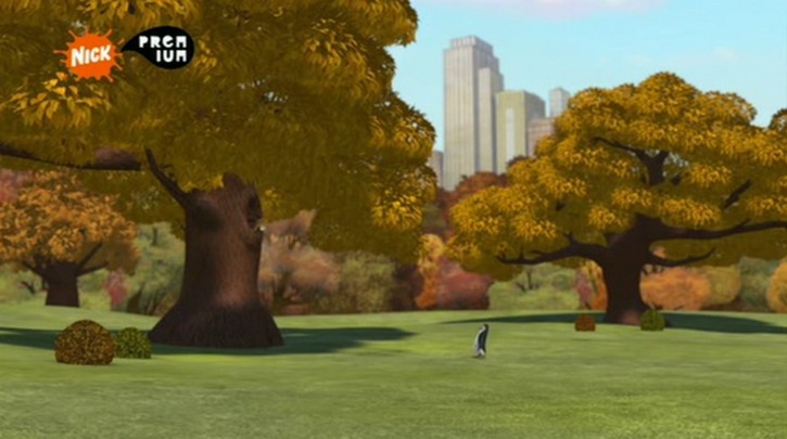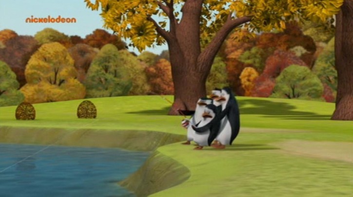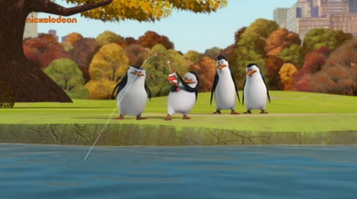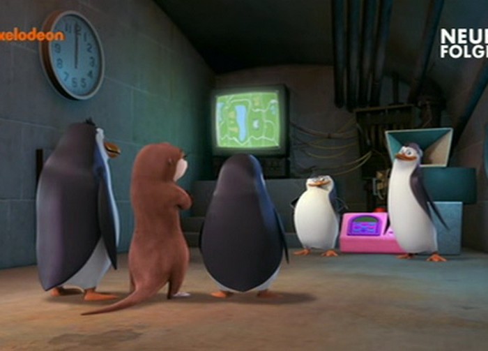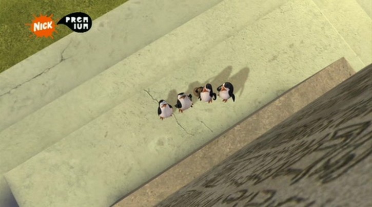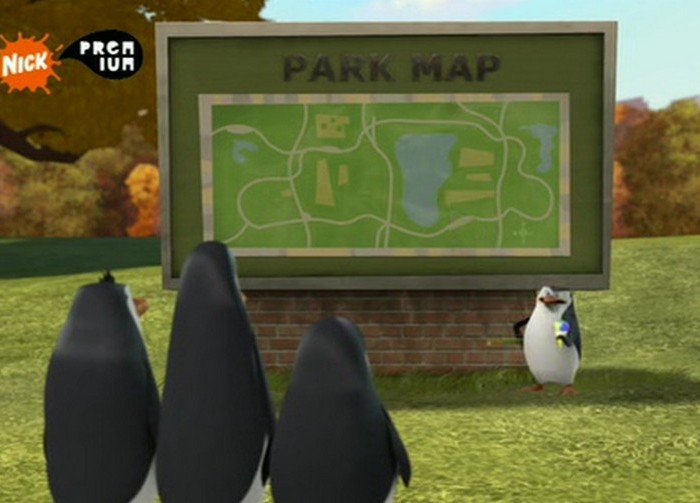 Hier stehen die Pinguine vor der Tafel mit der Karte im Park: