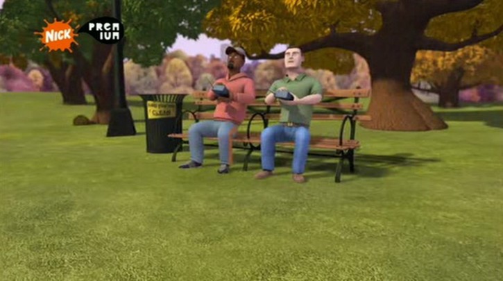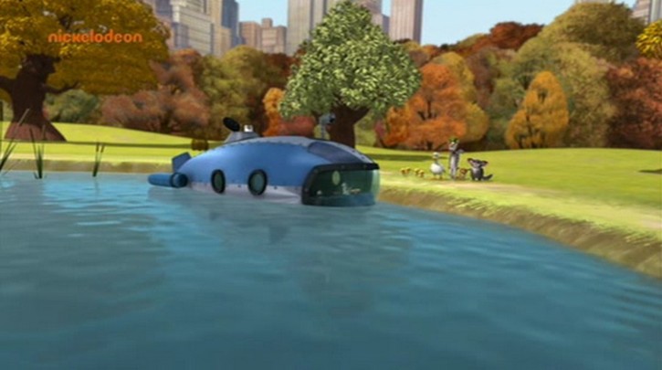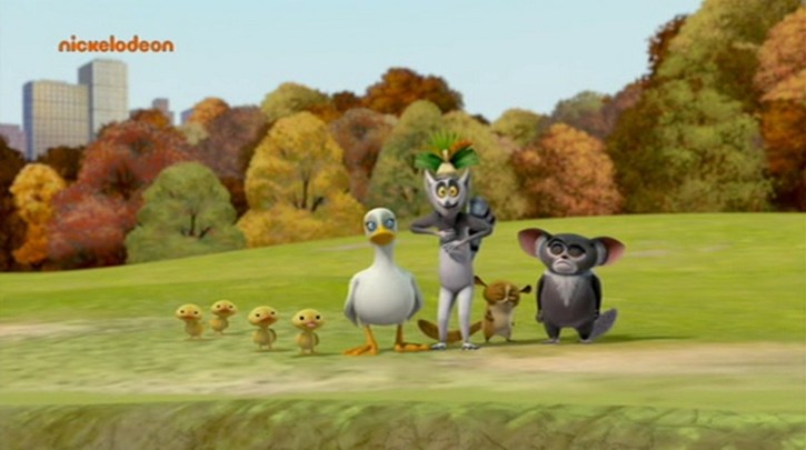 Hier schauen sich die Tiere die Karte auf dem Monitor an. Wie man sieht, ist die Perspektive gegenüber der Parktafel um 180° gedreht: