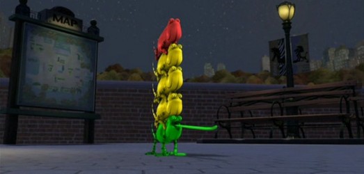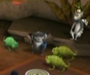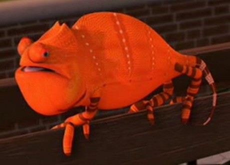 Das Chamäleon ist gar nicht begeistert von der Knuddelaktion des Rattenkönigs: