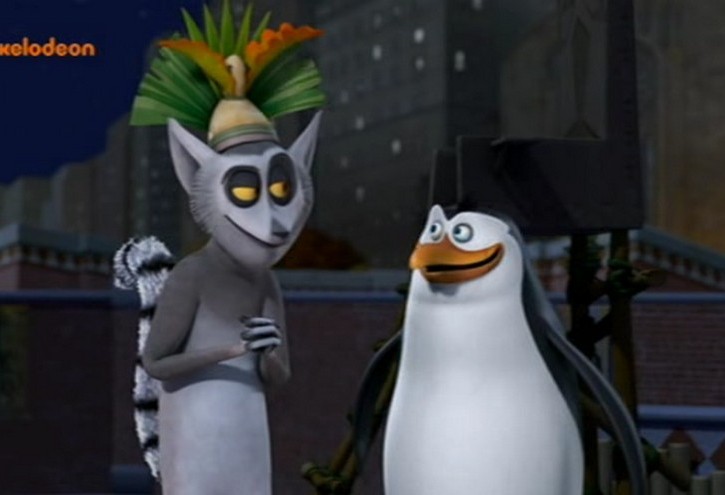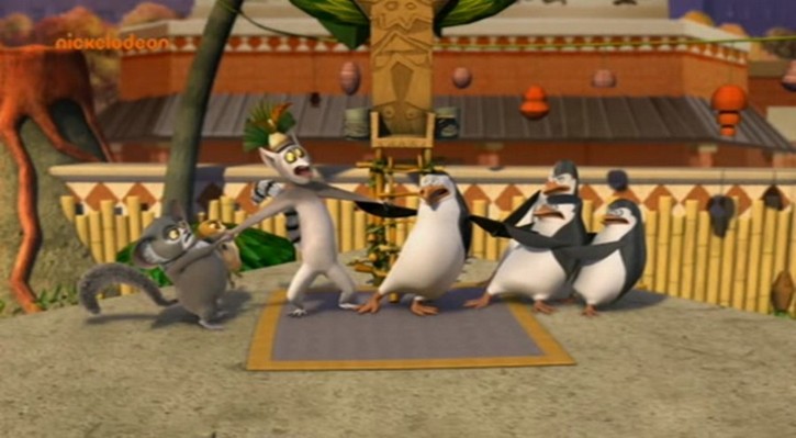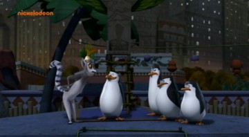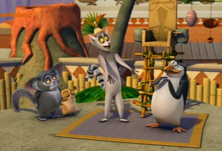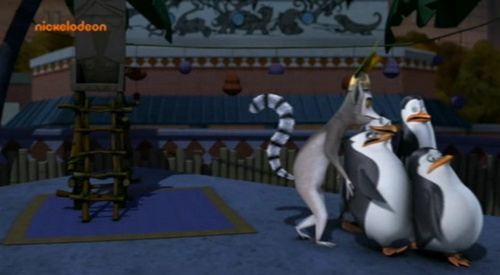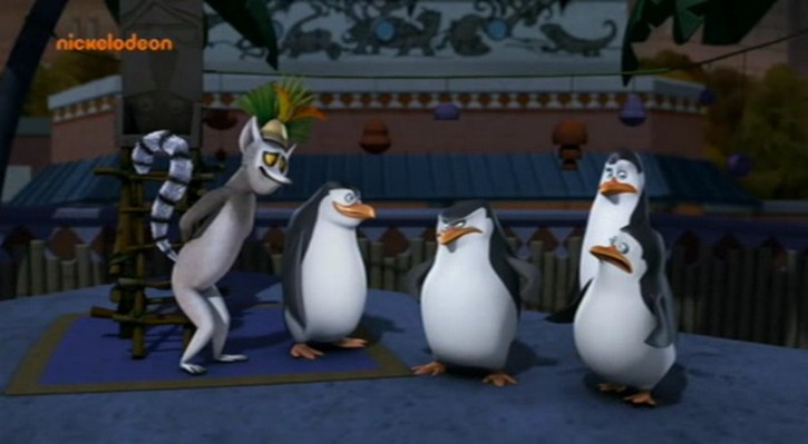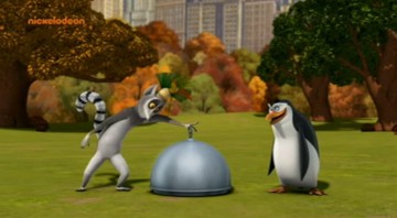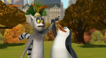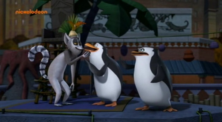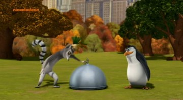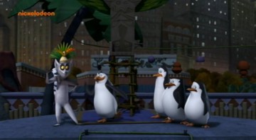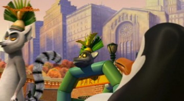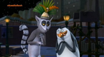 Dann steht Julien plötzlich auf dem Plan, der die Pinguine um Hilfe bittet. Skipper: „Rico, kümmer' dich sofort um den Ringelschwanz!”