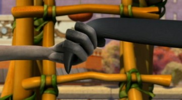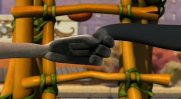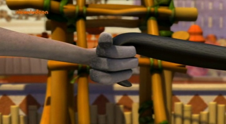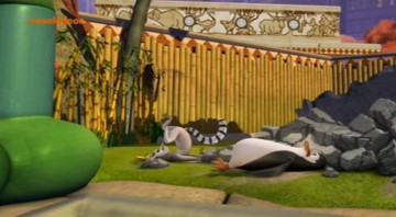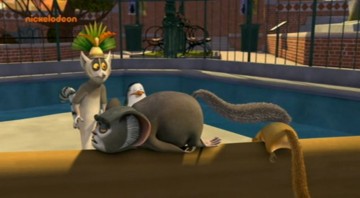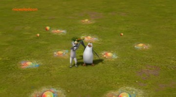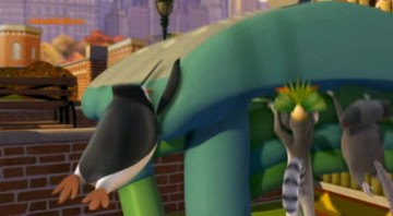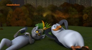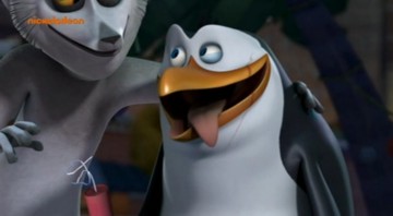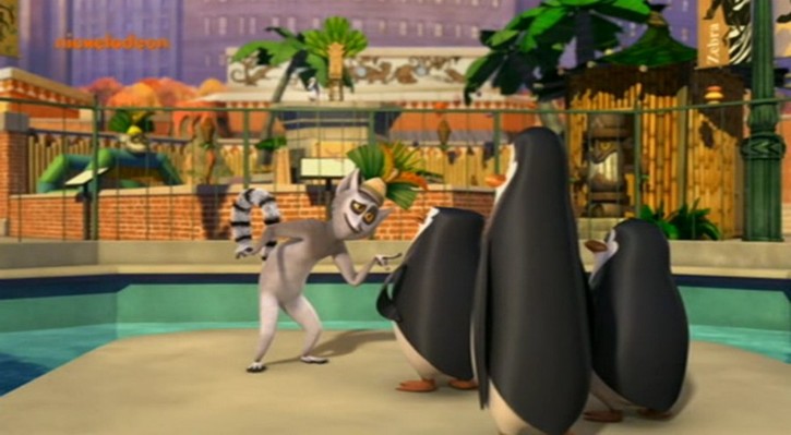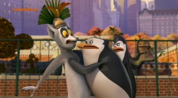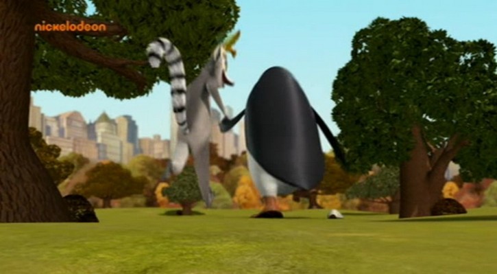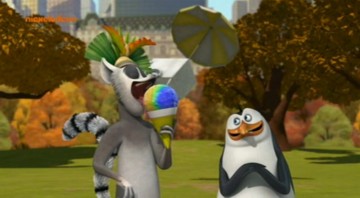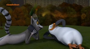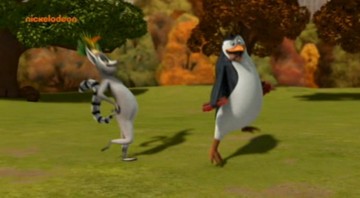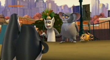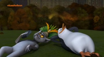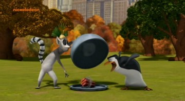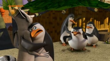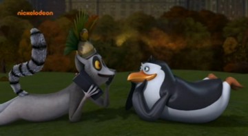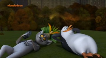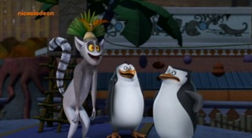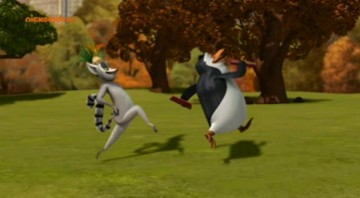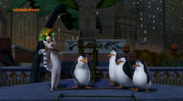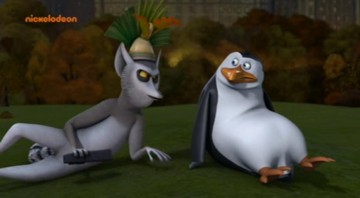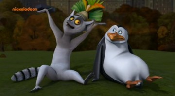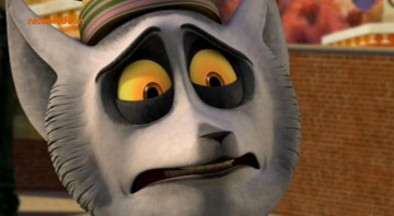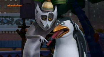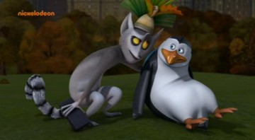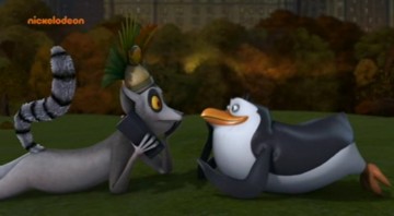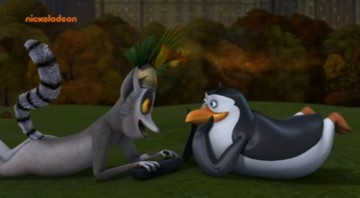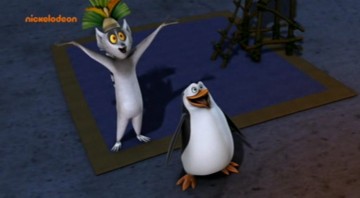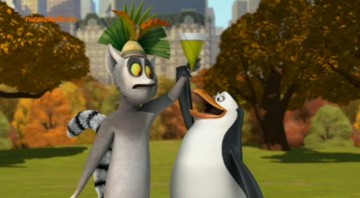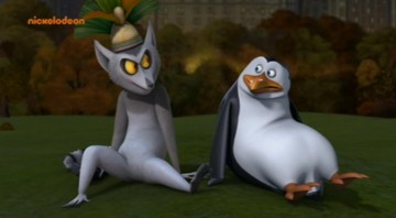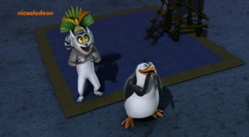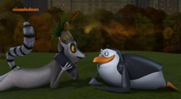 Julien: „Was? Mußt du etwas Pinguinkram erledigen? Ach, jetzt komm schon, Rico! Bei wem wirst du mehr Spaß haben, hä? Bei denen, oder bei mir?”