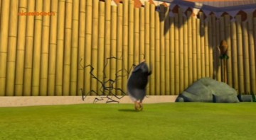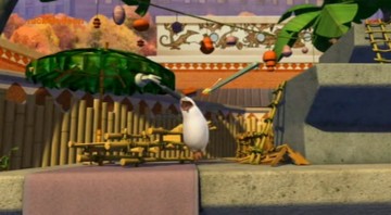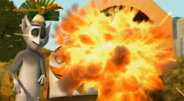 Julien: „Zu spät, ihr bloden Pinguine! Just in diesem Moment ist er dabei, mein Konigreich zu vergroßern. Und das mit der abgefahrendsten Kaputtmachmaschine, die es jemals gab!”