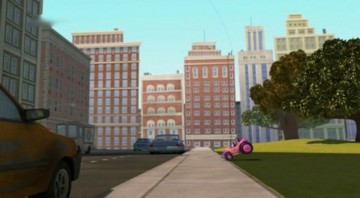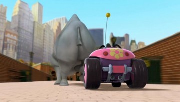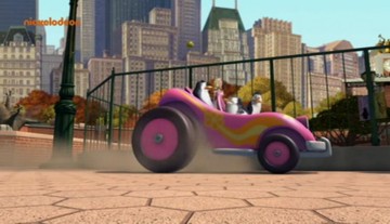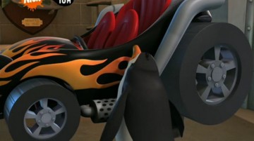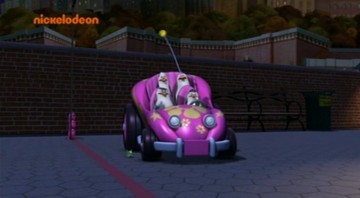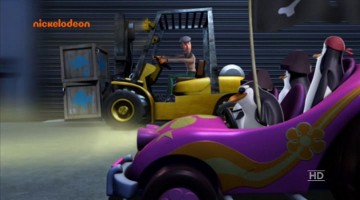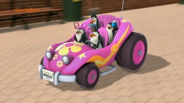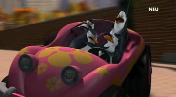 Als die Pinguine den Dodo klonen, fährt Dode einmal mit dem Einsatzfahrzeug im Hintergrund lang (und das Auto im übrigen zu Schrott!):