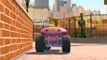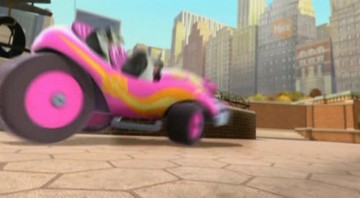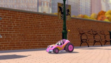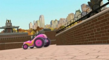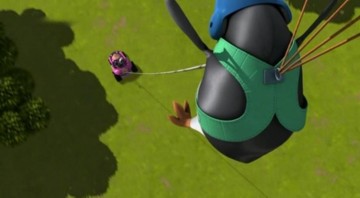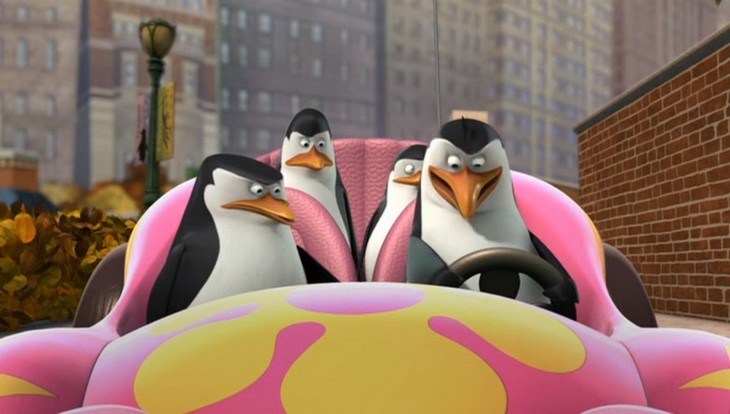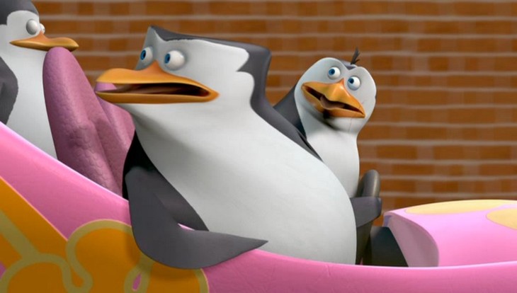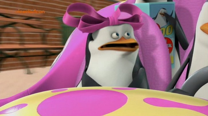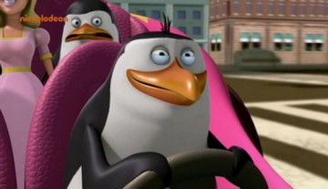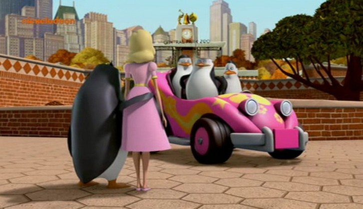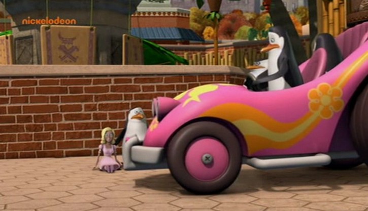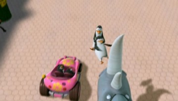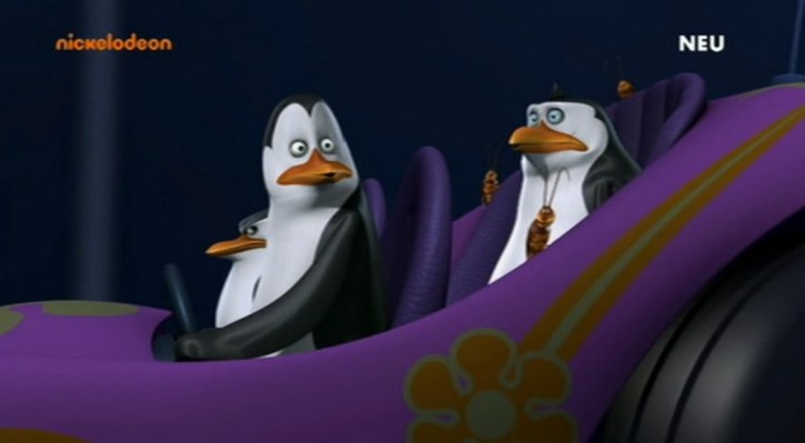 Nachdem das Püppchen aber mit dem Sprachchip versorgt wurde, wird es etwas krass. Skipper läßt sich von Rico breitschlagen, das Püppchen mit auf Einsatz zu nehmen. Allerdings folgt Rico nicht Kowalskis Anweisungen, sondern denen des Püppchens. (Wieso Rico plötzlich am Steuer sitzt, obwohl Kowalski zuerst gefahren ist, liegt anscheinend daran, daß Kowalski die Karte lesen kann…)