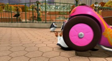 Skipper: „Jetzt paßt auf! Sehr euch an, wie ein echter Pinguin fährt!”