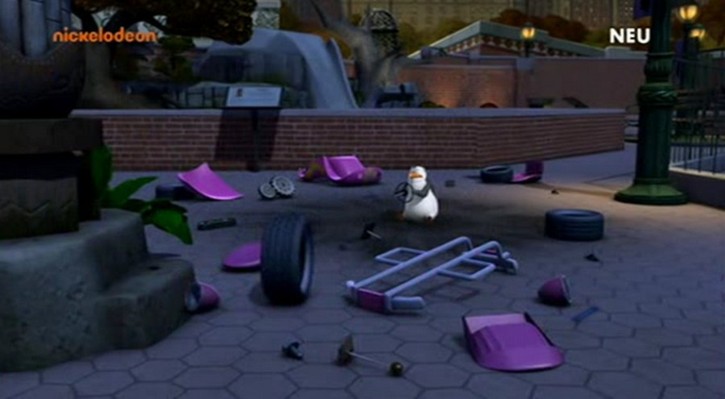 Skipper: „Das ist doch totaler Fisch mit Sauce, Kowalski! Aber das erklärt immer noch nicht, warum der Wagen wütend auf Rico sein sollte!”